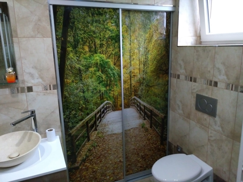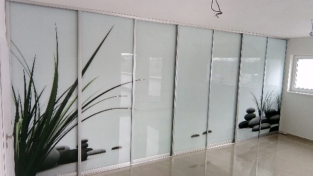 posuvné dveřní příčky s jedinečným grafickým sklem
