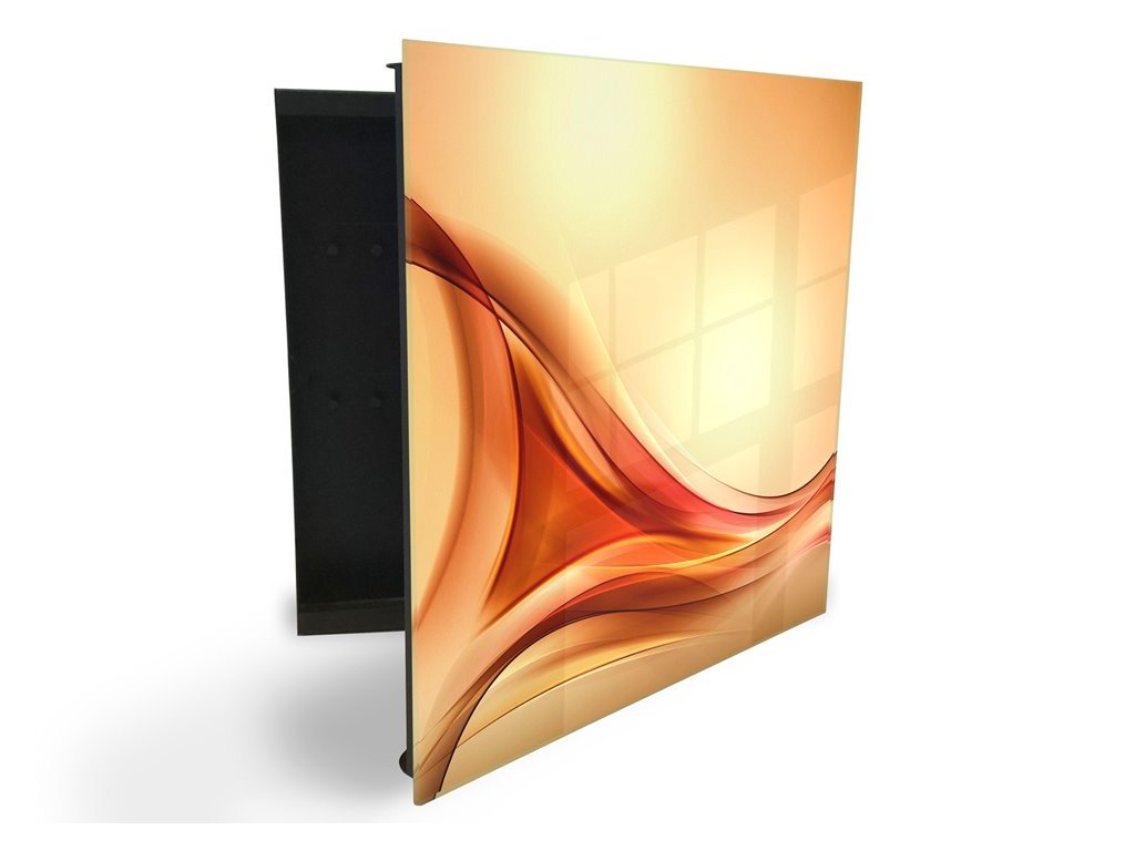 Glasdekor skříňka na klíče - béžovo oranžová abstrakce