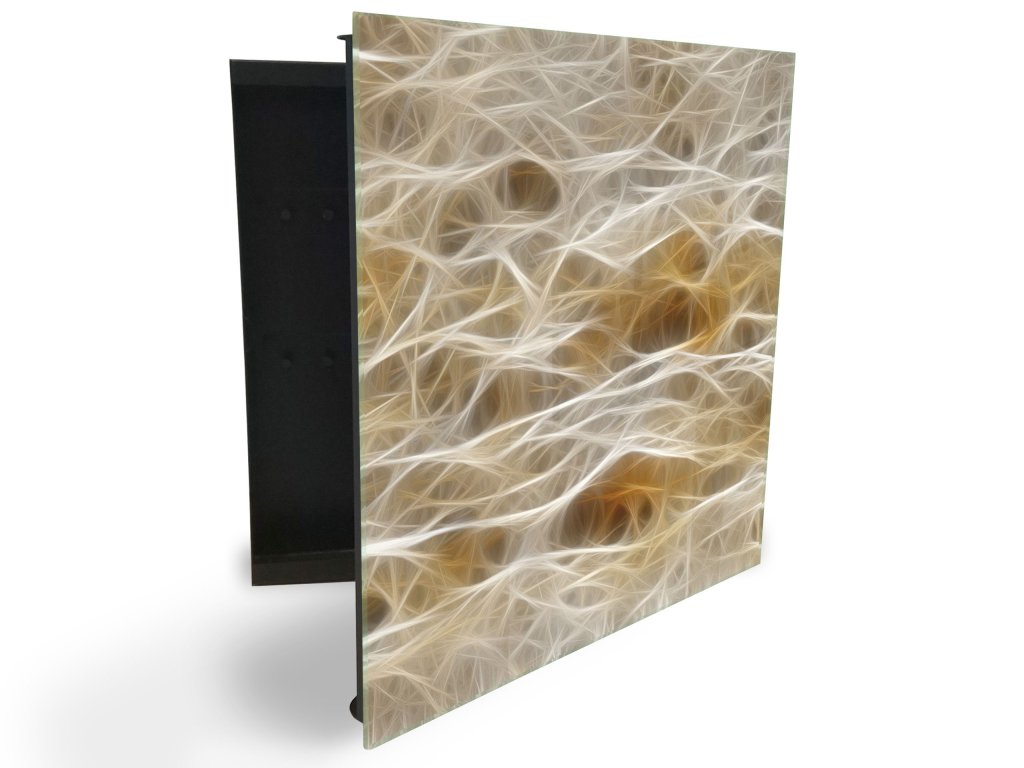 Glasdekor skříňka na klíče - bílo hnědá abstraktní malba