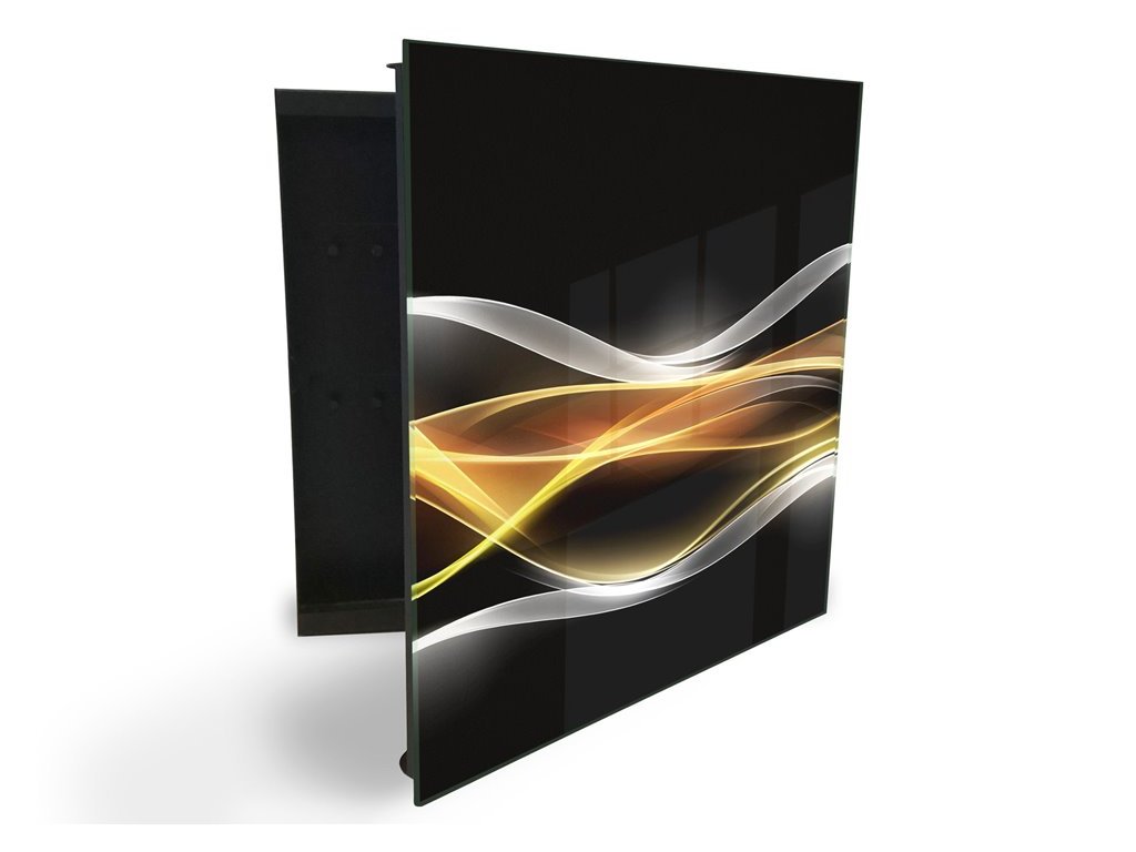 Glasdekor skříňka na klíče - bílo zlatá abstrakce na černém
