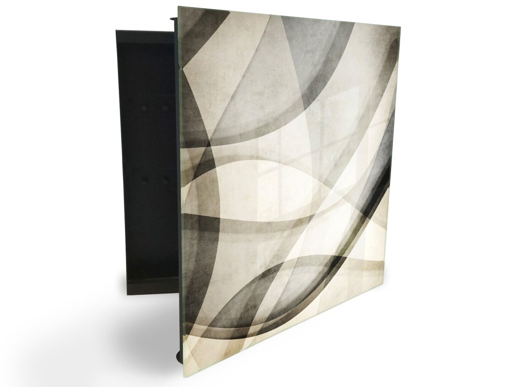 Glasdekor skříňka na klíče - černo béžová malovaná abstrakce