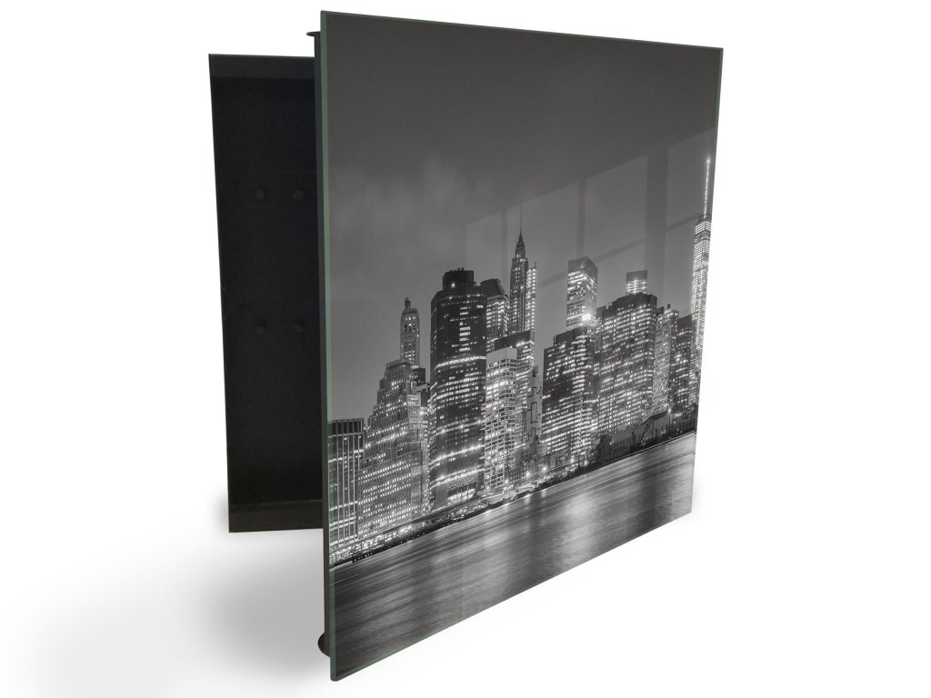 Glasdekor skříňka na klíče - černobílý Manhattan, New York