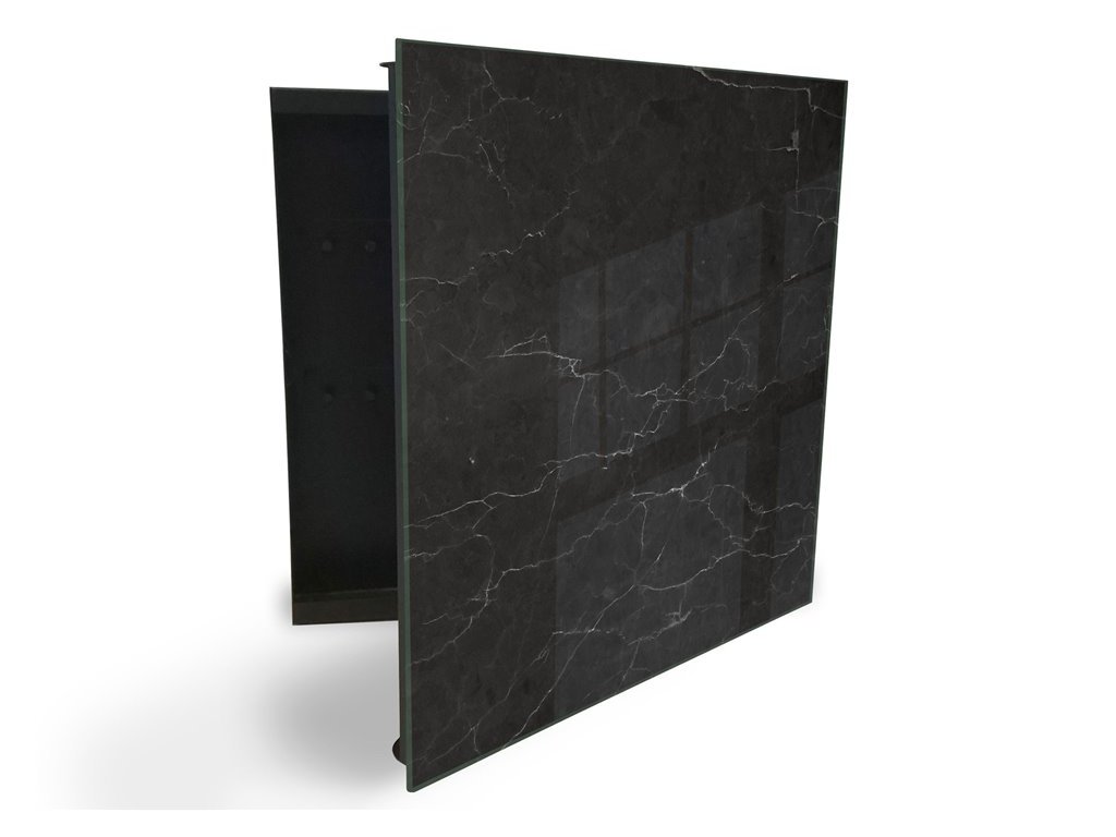 Glasdekor skříňka na klíče - černý mramor jemný vzor
