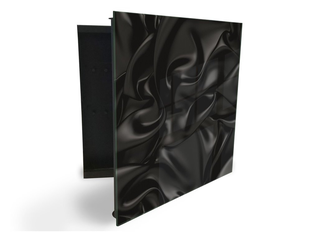 Glasdekor skříňka na klíče - černý satén textura