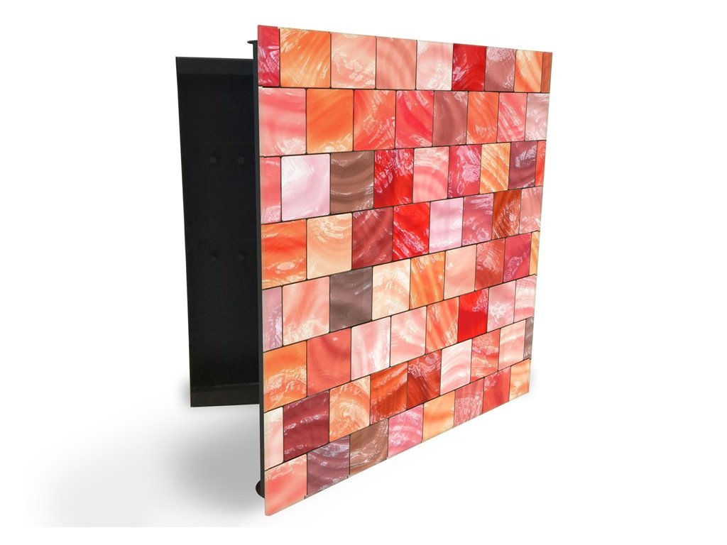 Glasdekor skříňka na klíče - červeno žlutá mozaika