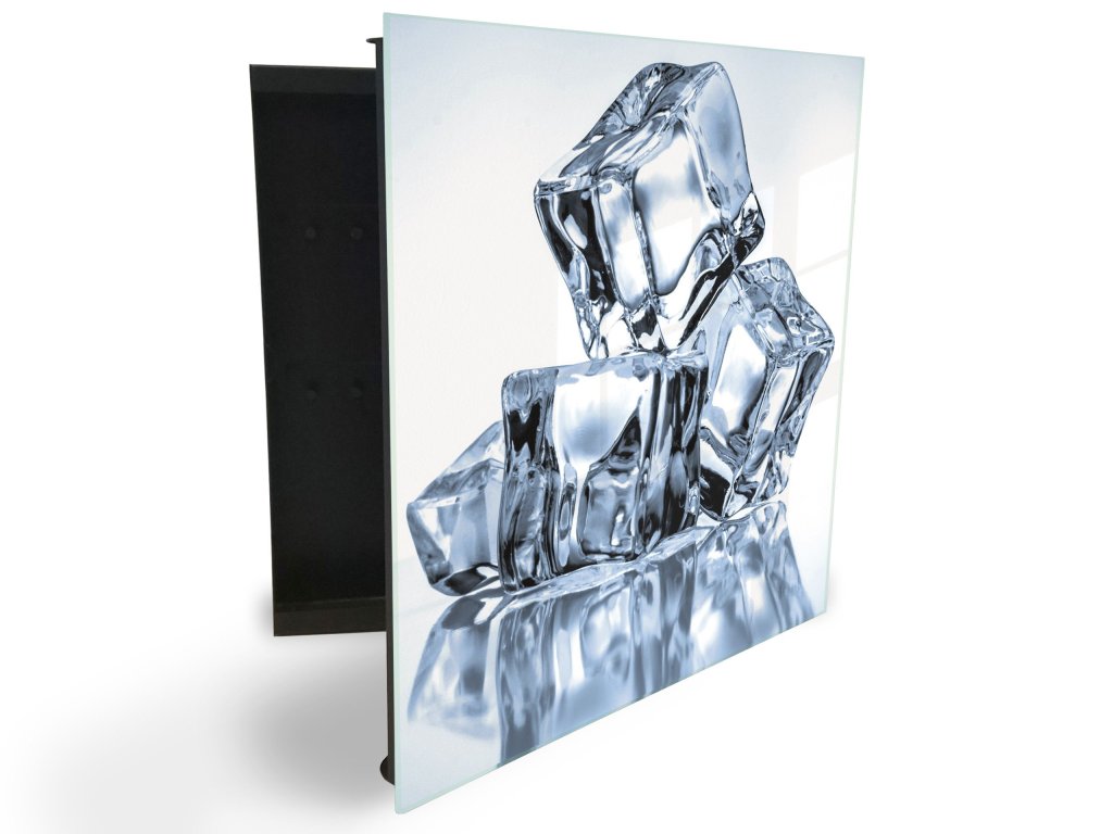 Glasdekor skříňka na klíče - čtyři ledové kostky na bílém pozadí