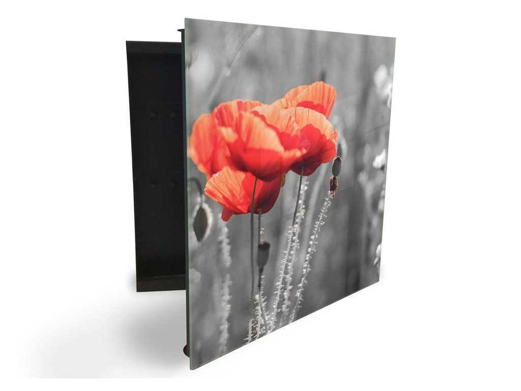 Glasdekor skříňka na klíče - detail červený vlčí mák