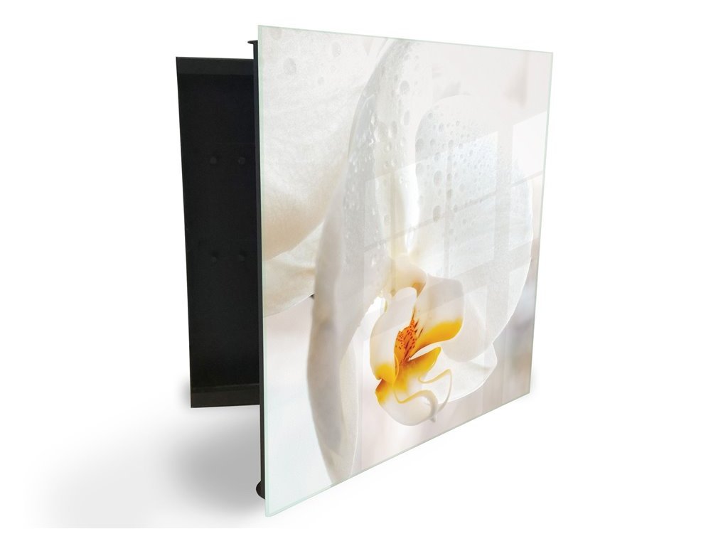 Glasdekor skříňka na klíče - detail květu bílá orchidej