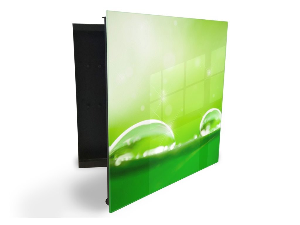 Glasdekor skříňka na klíče - detail rosy na zeleném
