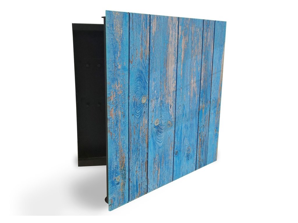 Glasdekor skříňka na klíče - dřevo modrý nátěr