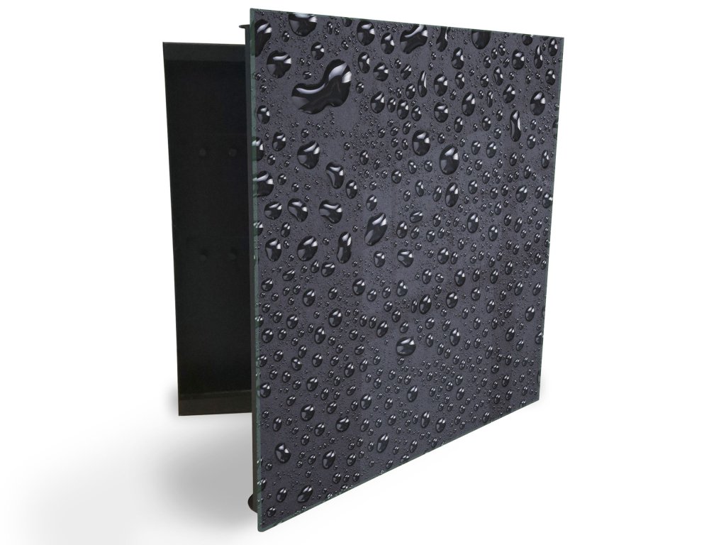 Glasdekor skříňka na klíče - drobné kapky vody na černém