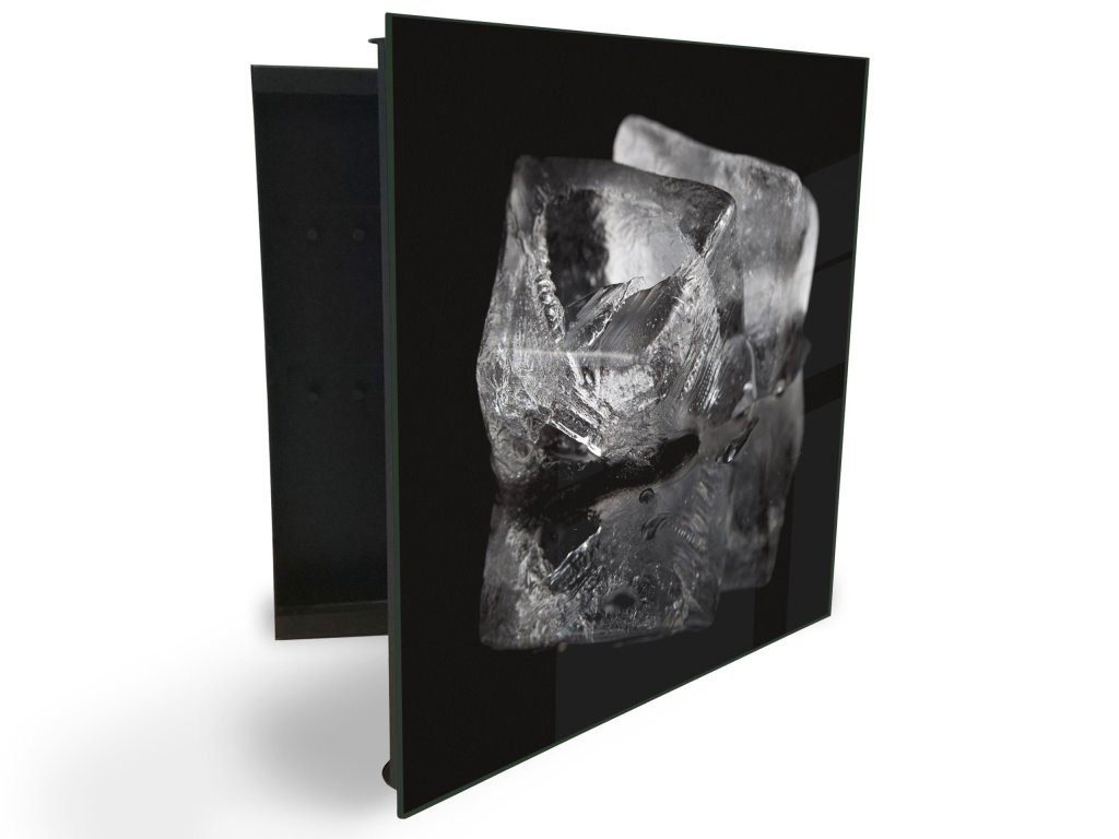 Glasdekor skříňka na klíče - dvě ledové kostky na černém podkladu