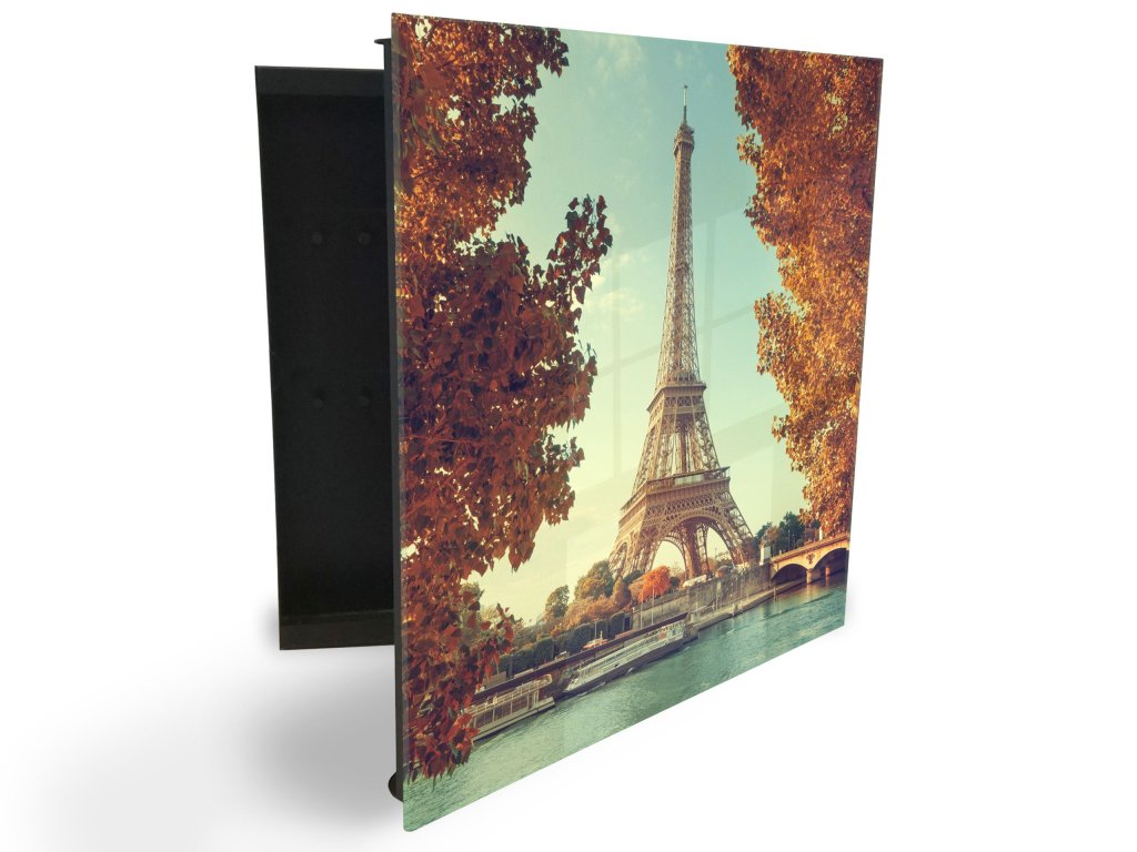 Glasdekor skříňka na klíče - Eiffelova věž na řekou Seinou