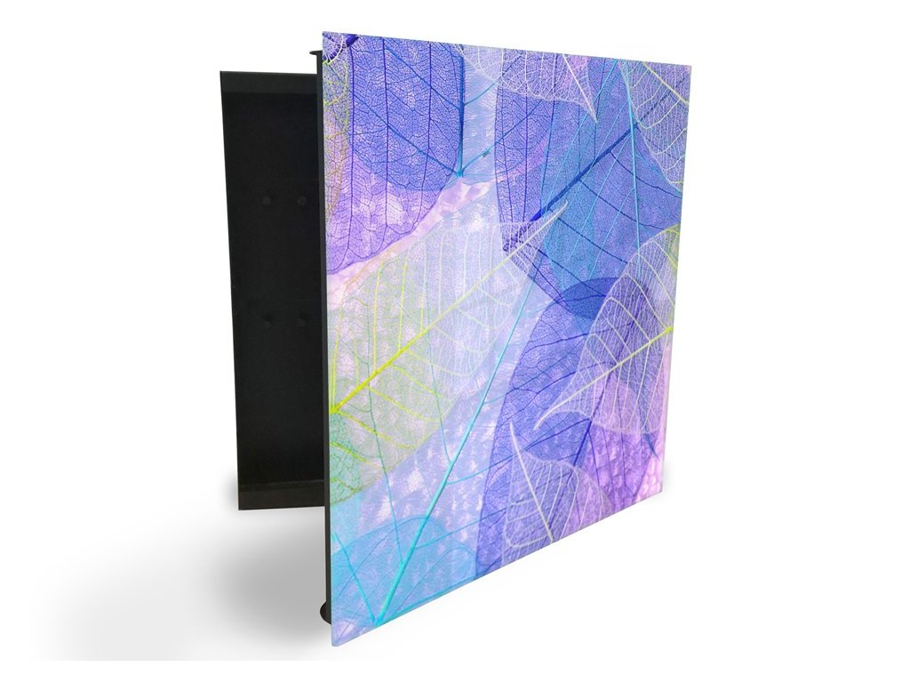 Glasdekor skříňka na klíče - fialová abstraktní kostra listí