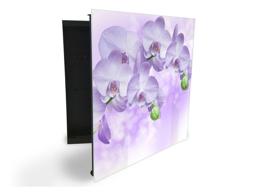 Glasdekor skříňka na klíče - jemně fialové květy orchideje