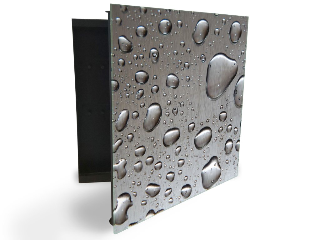 Glasdekor skříňka na klíče - kapky vody na nerezi