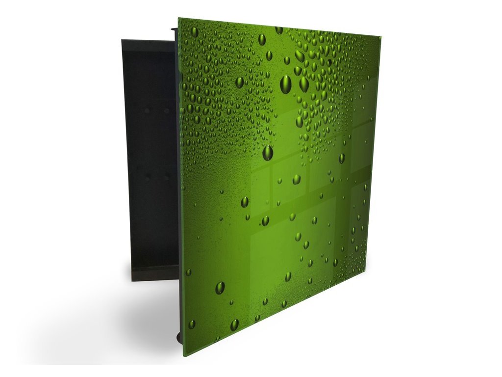 Glasdekor skříňka na klíče - kapky vody na zeleném skle