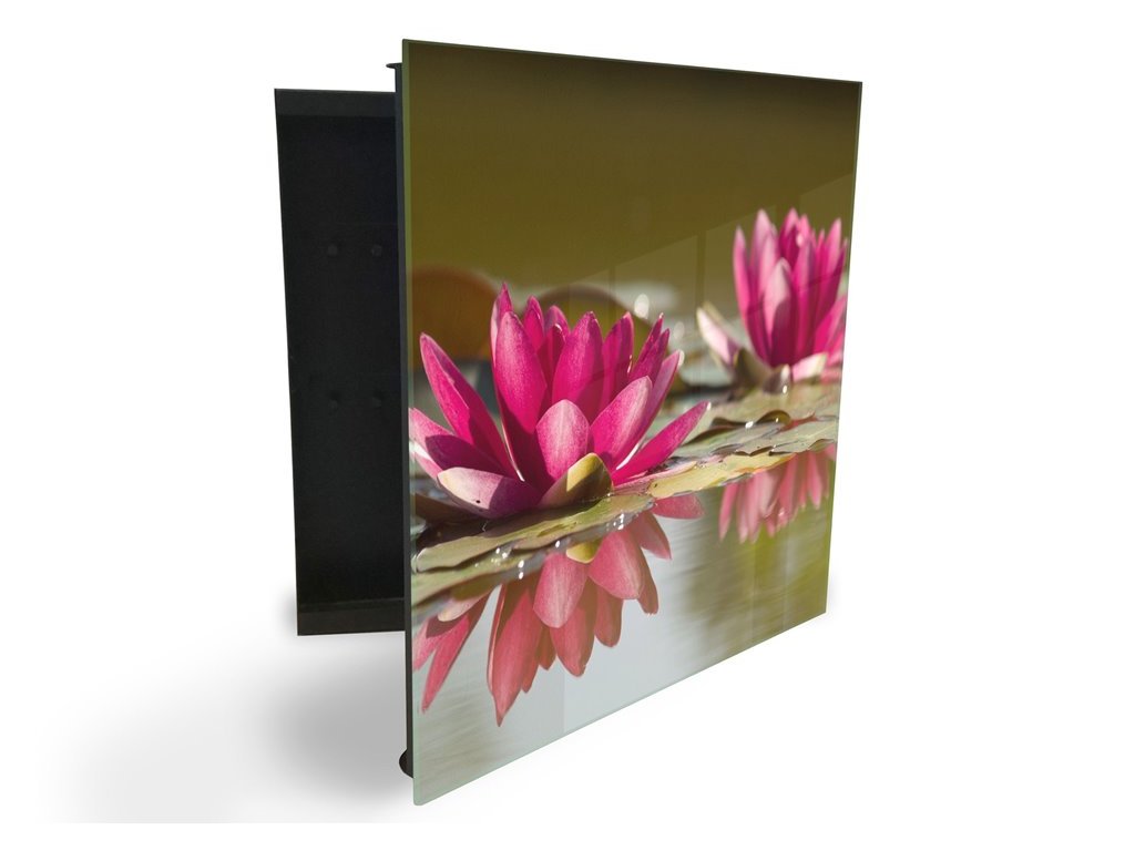 Glasdekor skříňka na klíče - květ růžový leknín na vodě