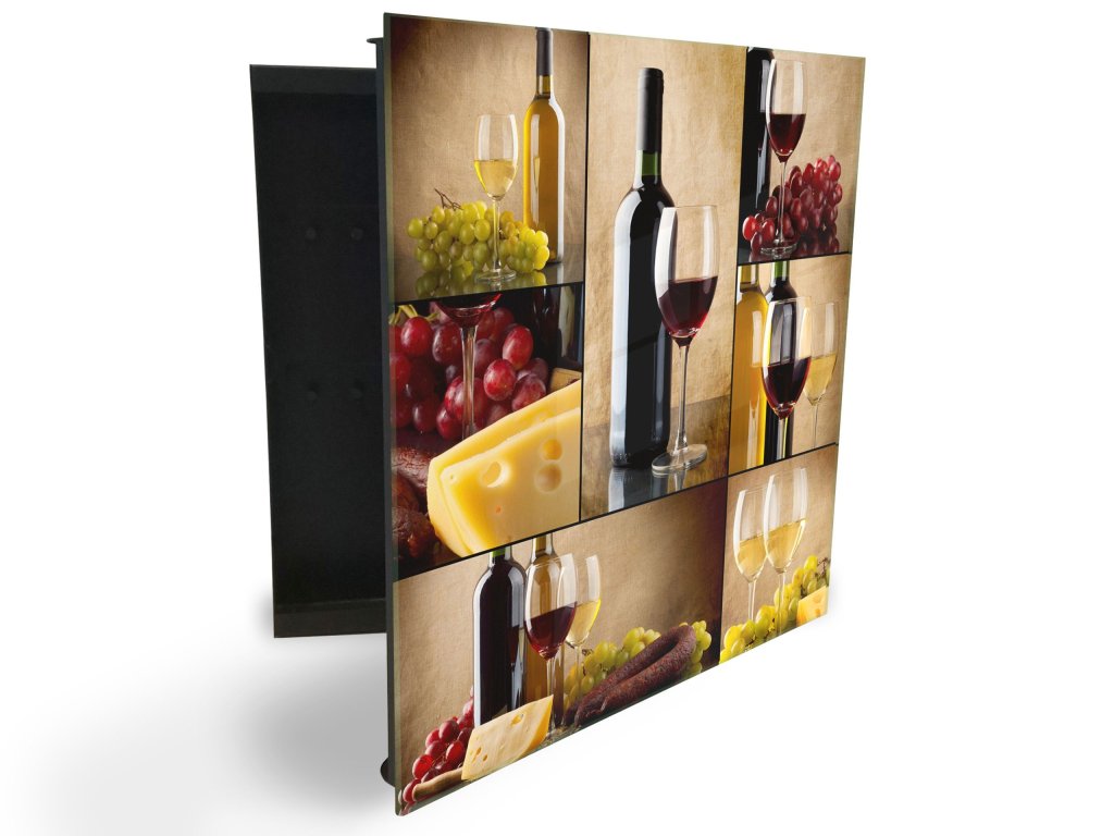 Glasdekor skříňka na klíče - láhev, sklenice a hrozny vína