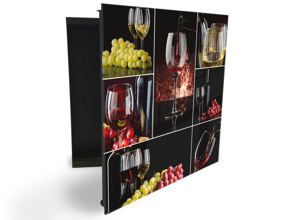 Glasdekor skříňka na klíče - láhev a sklenice červené a bílé víno