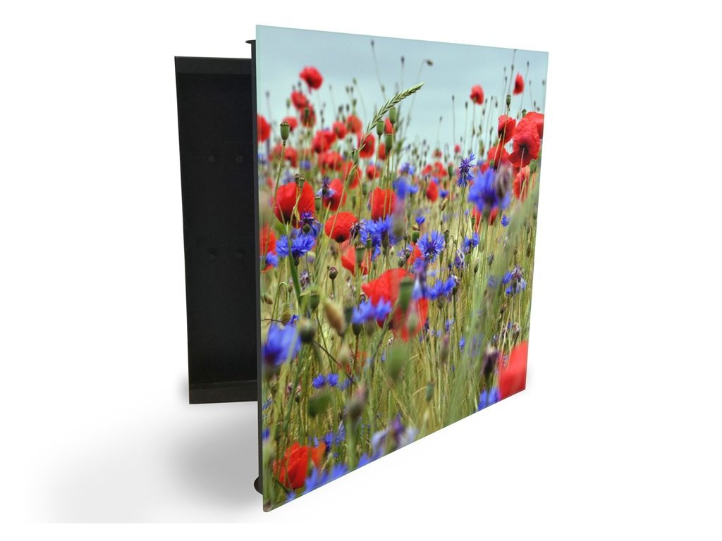 Glasdekor skříňka na klíče - louka květy vlčí máky a chrpy