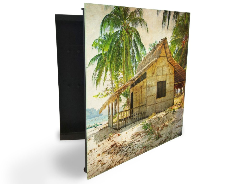 Glasdekor skříňka na klíče - malovaná chýše na pobřeží