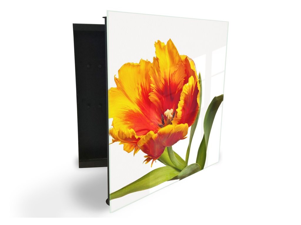 Glasdekor skříňka na klíče - malovaný žlutý květ tulipánu