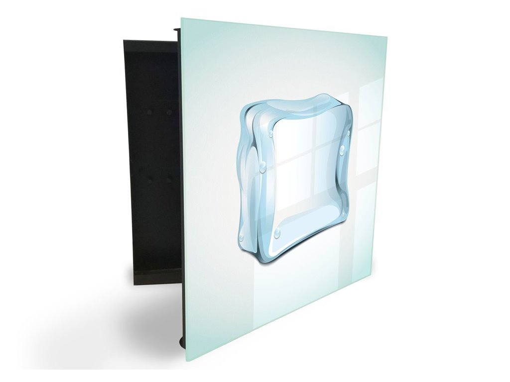 Glasdekor skříňka na klíče - modrá ledová kostka abstrakt
