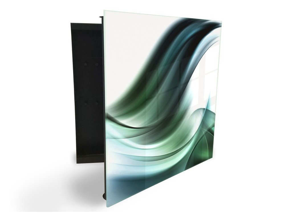 Glasdekor skříňka na klíče - modro zelená vlna abstrakce