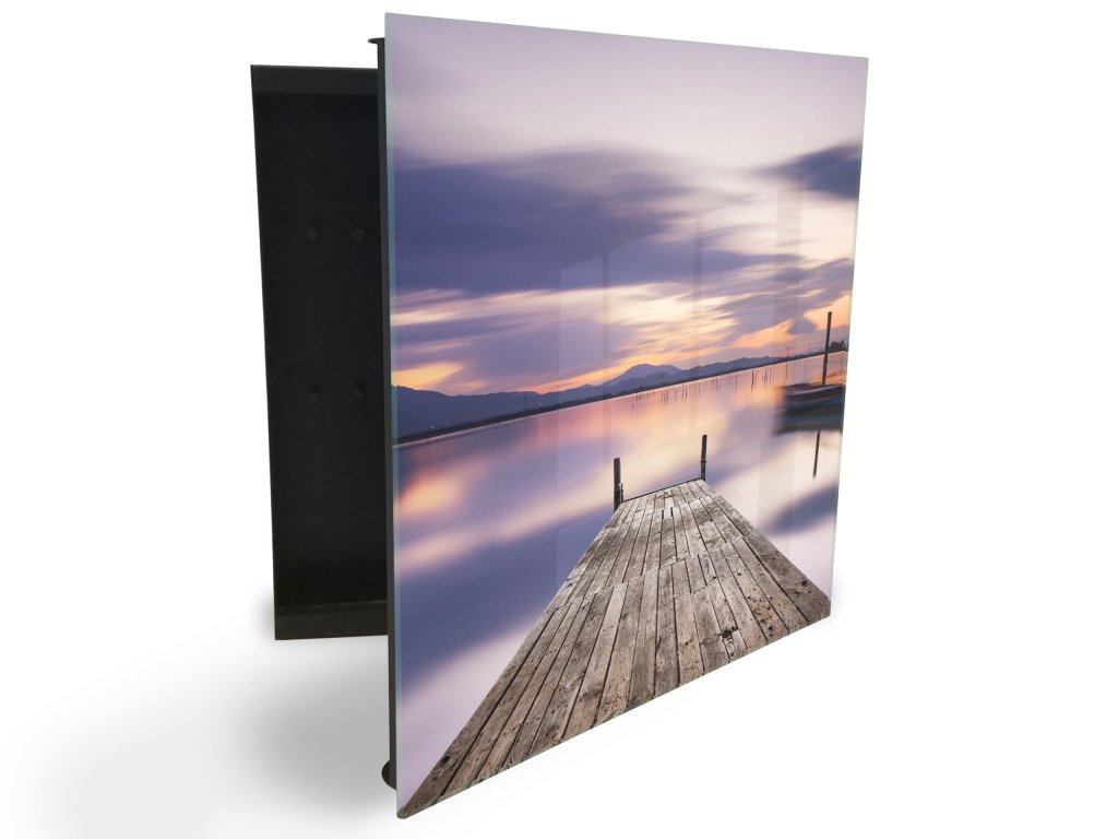 Glasdekor skříňka na klíče - molo k jezeru se západem slunce