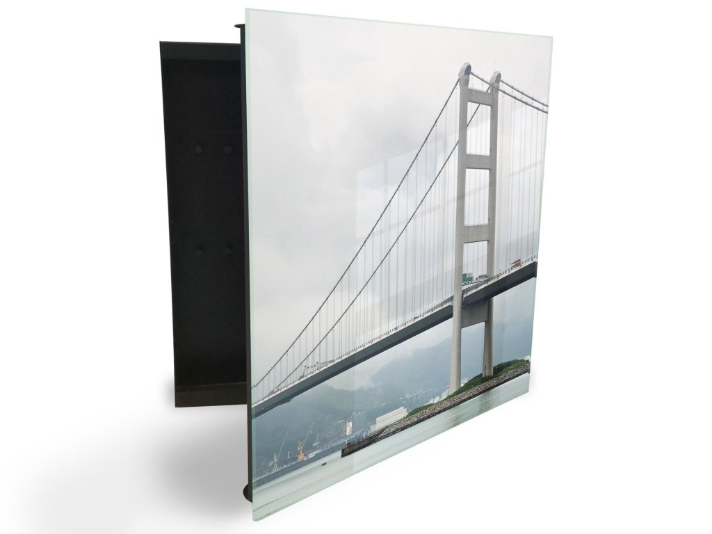 Glasdekor skříňka na klíče - most nad řekou