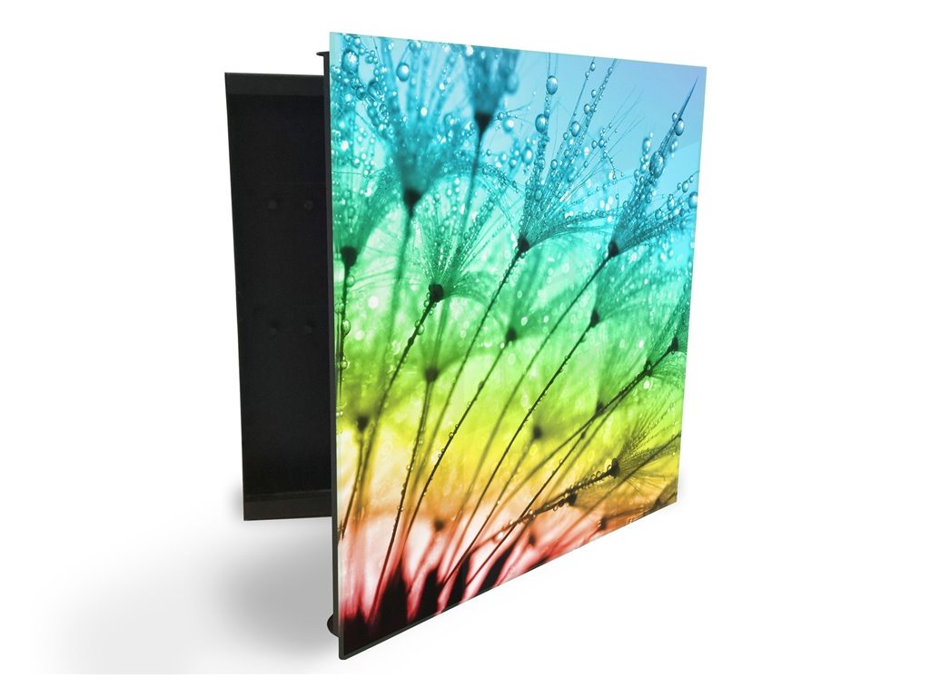 Glasdekor skříňka na klíče - orosená pampeliška v duze