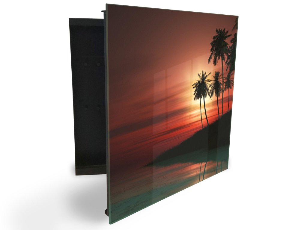 Glasdekor skříňka na klíče - palmový ostrov v západu slunce