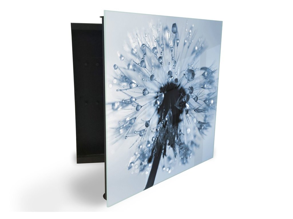 Glasdekor skříňka na klíče - pampeliška s kapkami rosy
