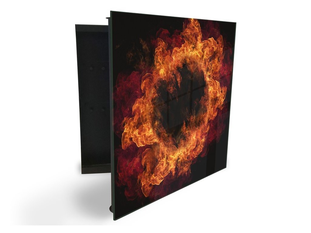 Glasdekor skříňka na klíče - plameny oheň na černém