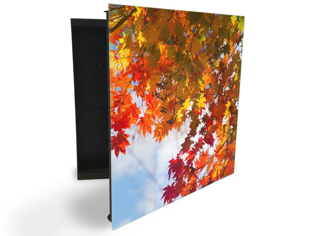 Glasdekor skříňka na klíče - podzimní listí podklad nebe
