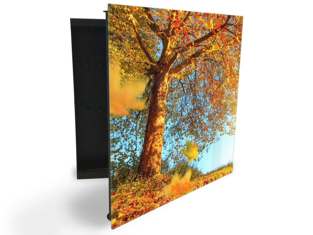 Glasdekor skříňka na klíče - podzimní strom a listí