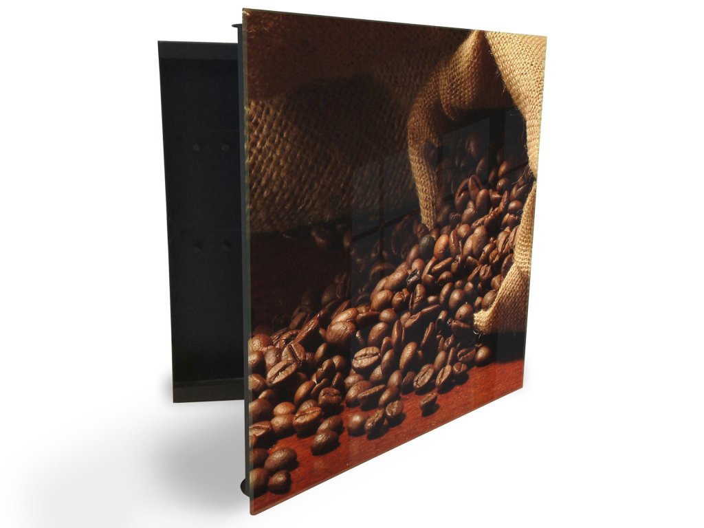 Glasdekor skříňka na klíče - rozsypaná káva z pytle na stůl