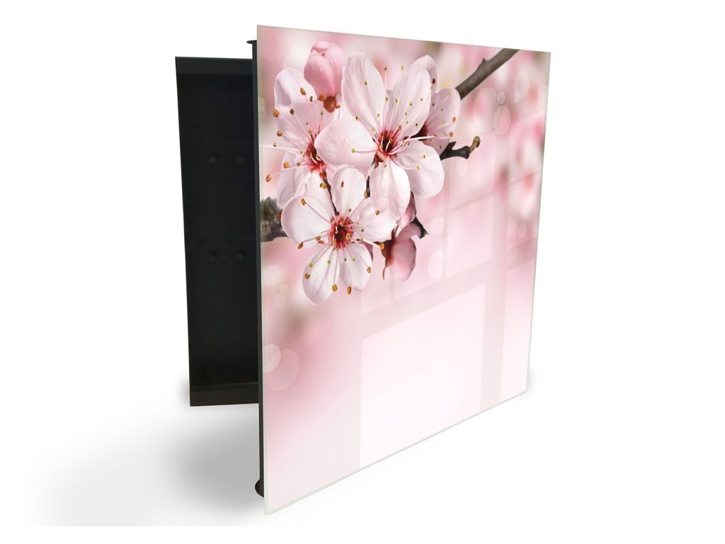 Glasdekor skříňka na klíče - růžové květy na větvi
