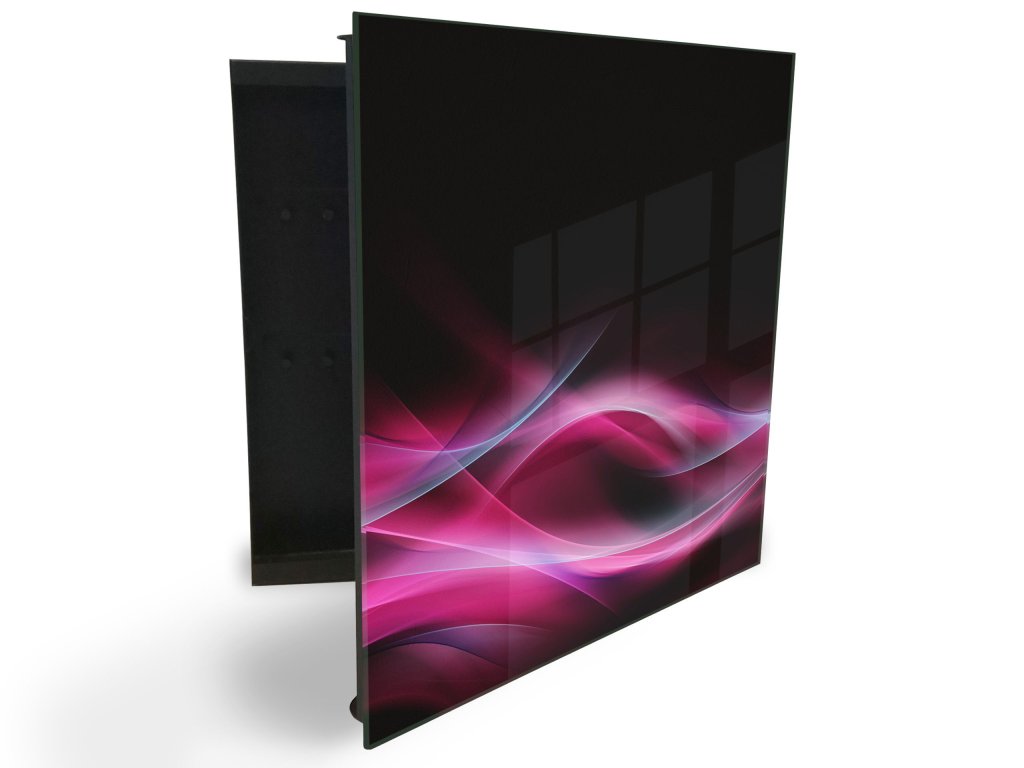 Glasdekor skříňka na klíče - růžovo fialova abstrakce na černém
