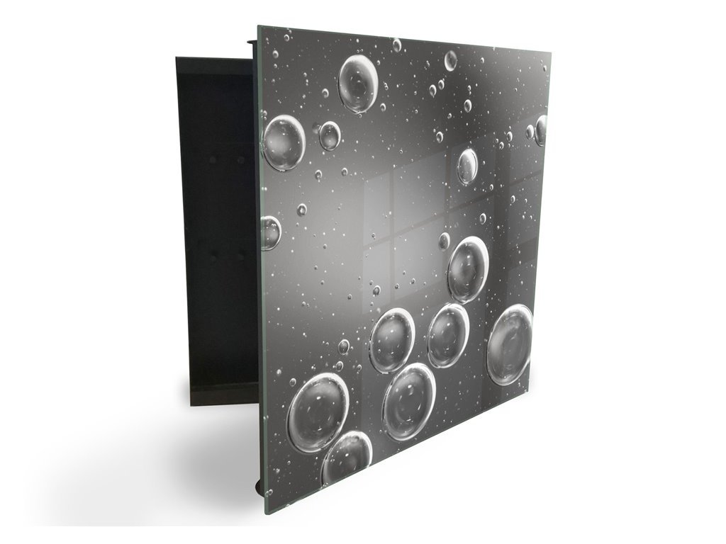 Glasdekor skříňka na klíče -šedé abstraktní bubliny