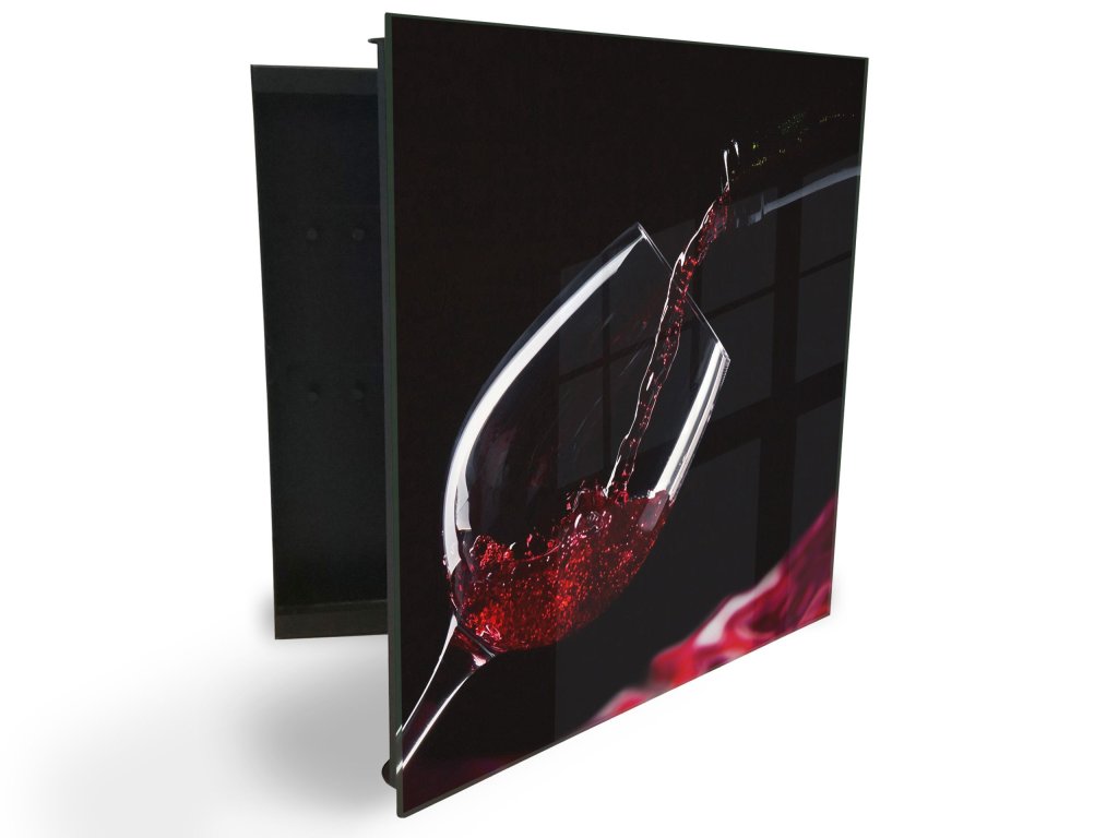 Glasdekor skříňka na klíče - sklenice červeného vína na tmavém pozadí