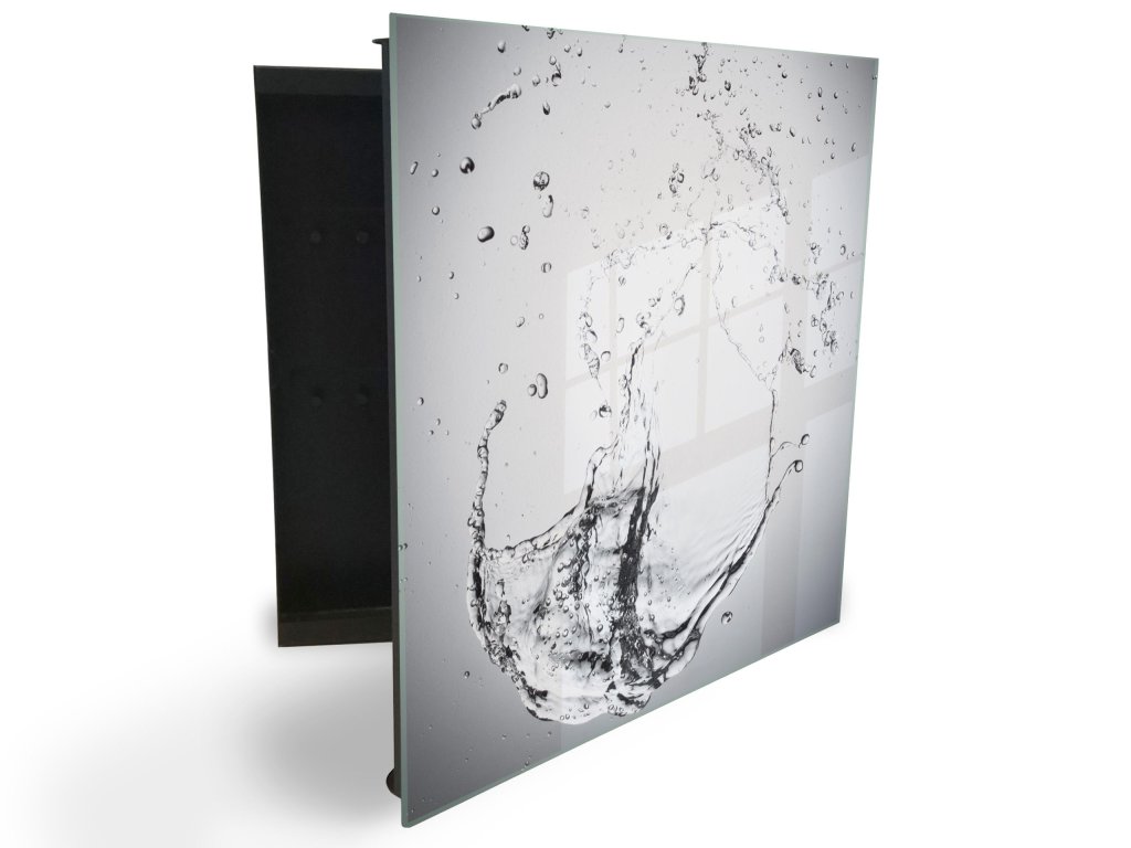 Glasdekor skříňka na klíče - šplouchání vody na šedém podkladu