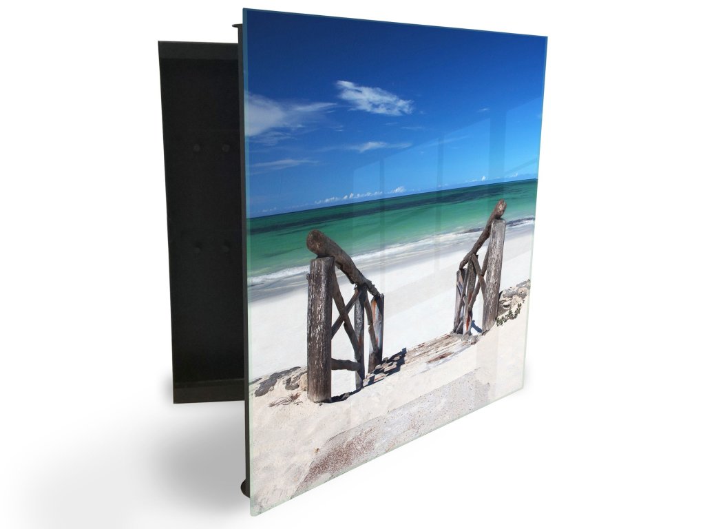 Glasdekor skříňka na klíče - staré dřevěné schody vedoucí na pláž u moře
