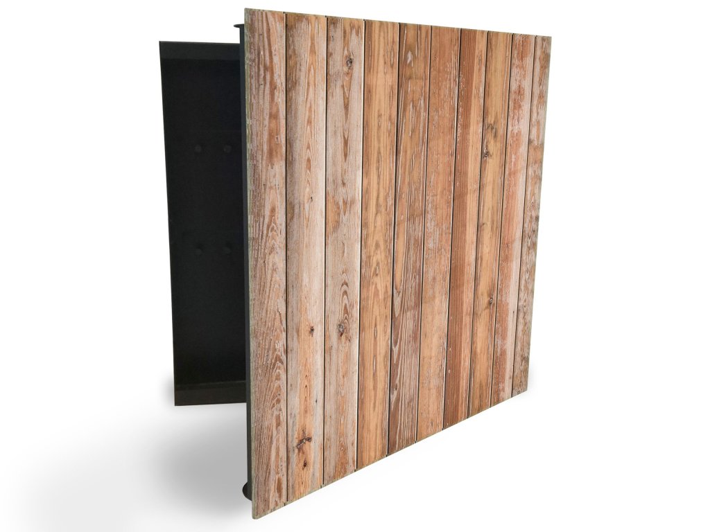Glasdekor skříňka na klíče - stěna z přírodního dřeva