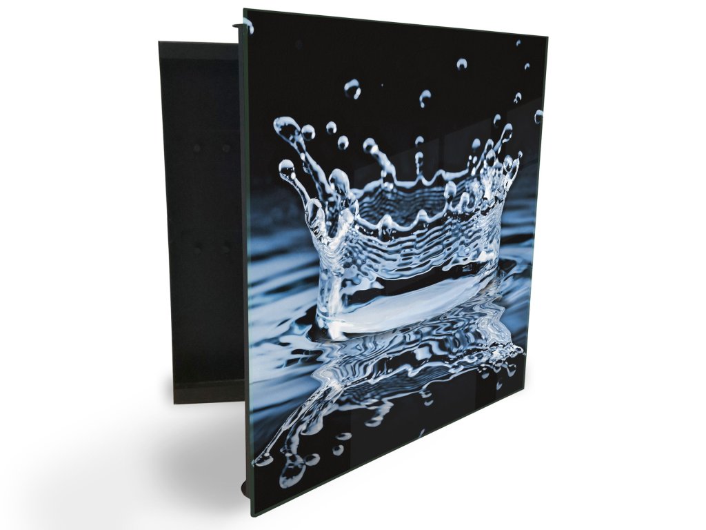 Glasdekor skříňka na klíče - střik vody z hladiny na černém podkladu