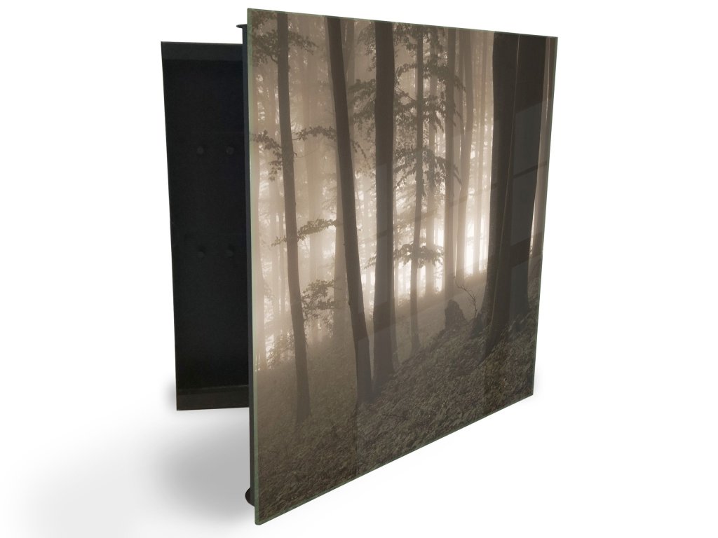 Glasdekor skříňka na klíče - tajemný les v mlze