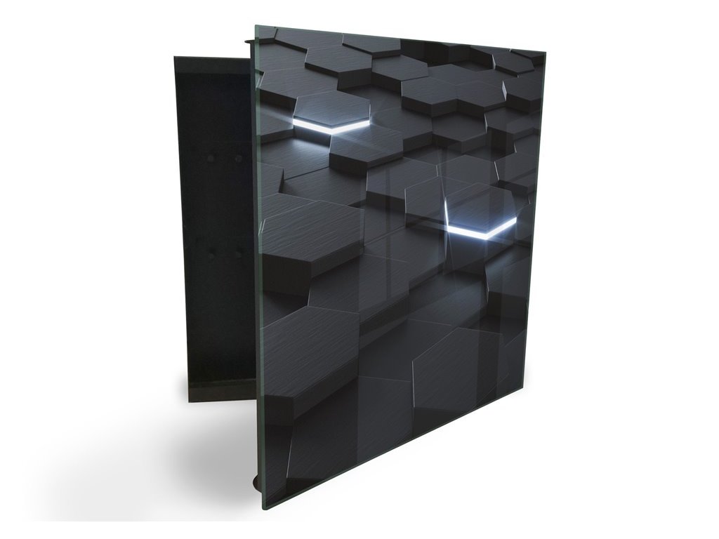 Glasdekor skříňka na klíče - technické 3D černé tvary