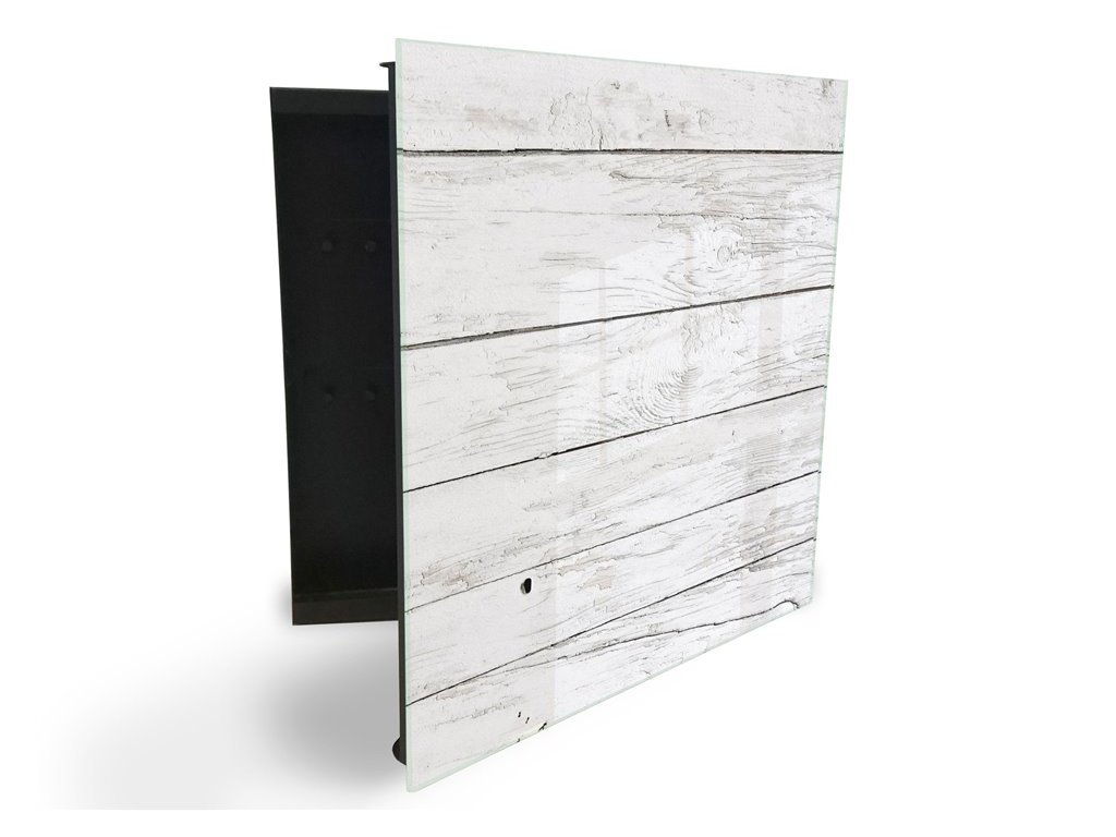 Glasdekor skříňka na klíče - textura bílé dřevo