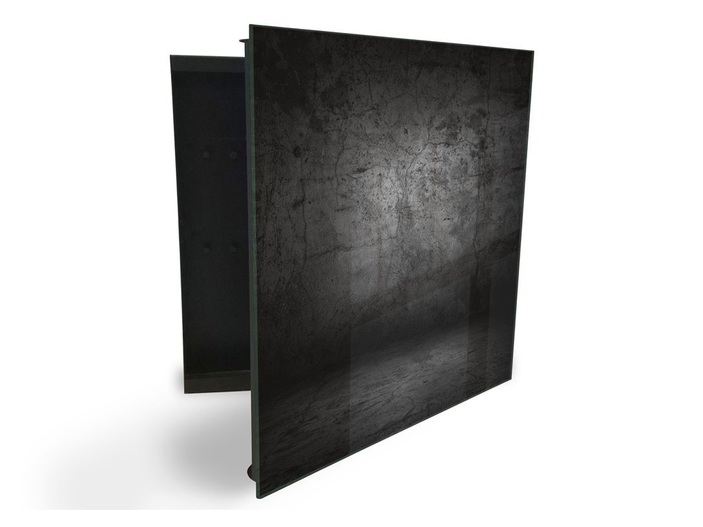 Glasdekor skříňka na klíče - tmavá stěna beton